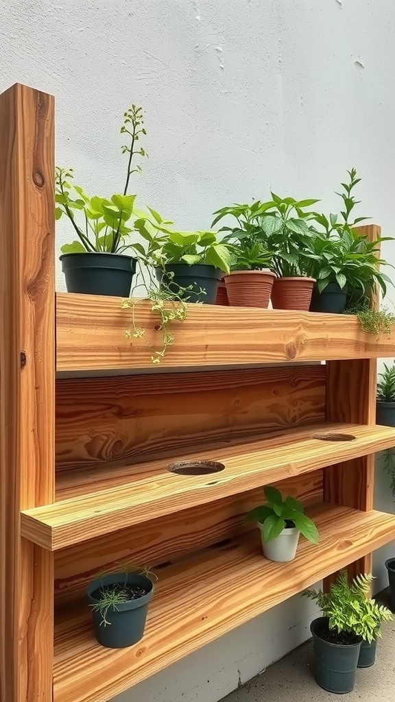 Planter shelves are a fantastic way to combine style with practicality. The image showcases a sleek, vertical shelf made from reclaimed wood, offering both storage and a place for plants to thrive.